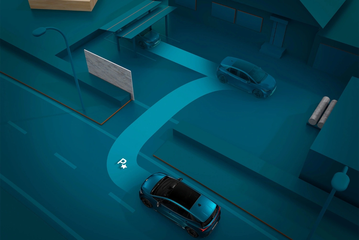Nigdy więcej stresu przy parkowaniu. Kamera Top View (w Pakiecie Pilot L) daje Ci widok 360 stopni z lotu ptaka.