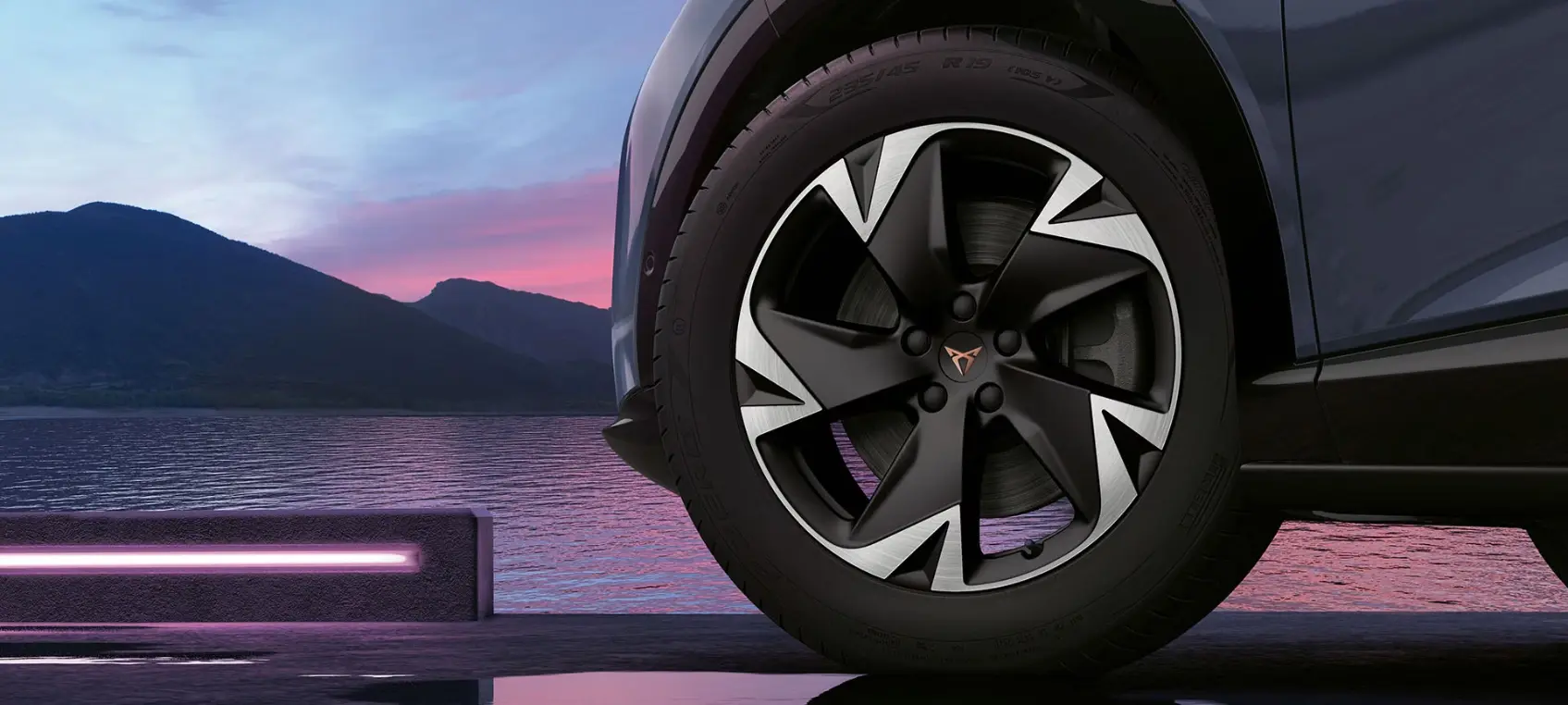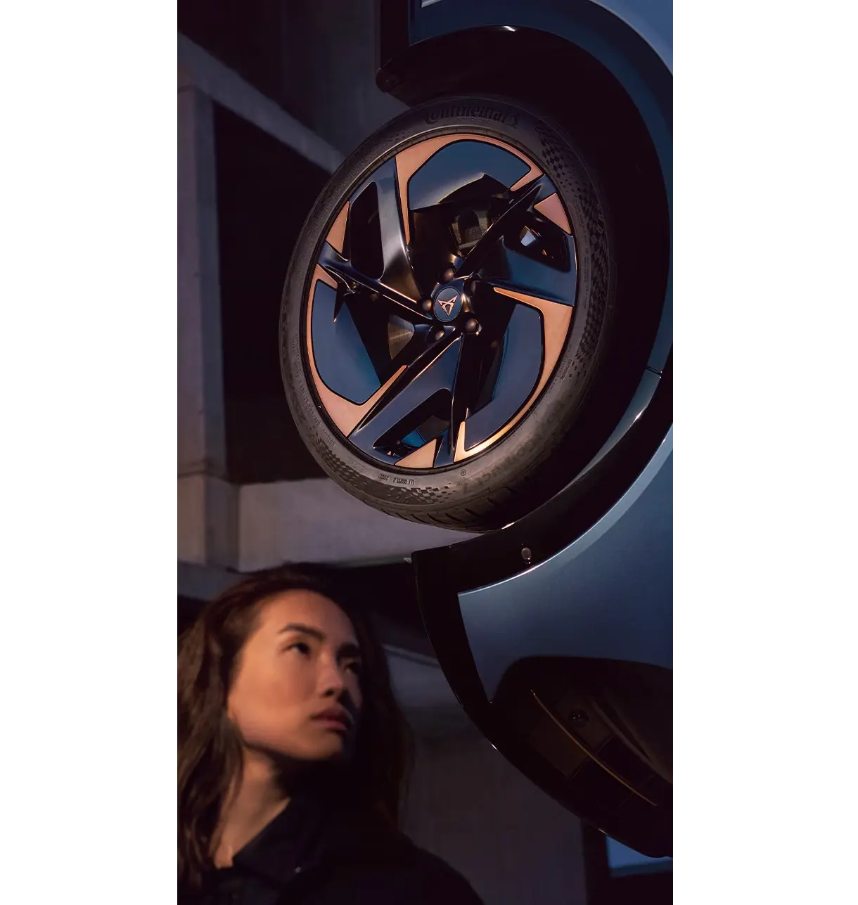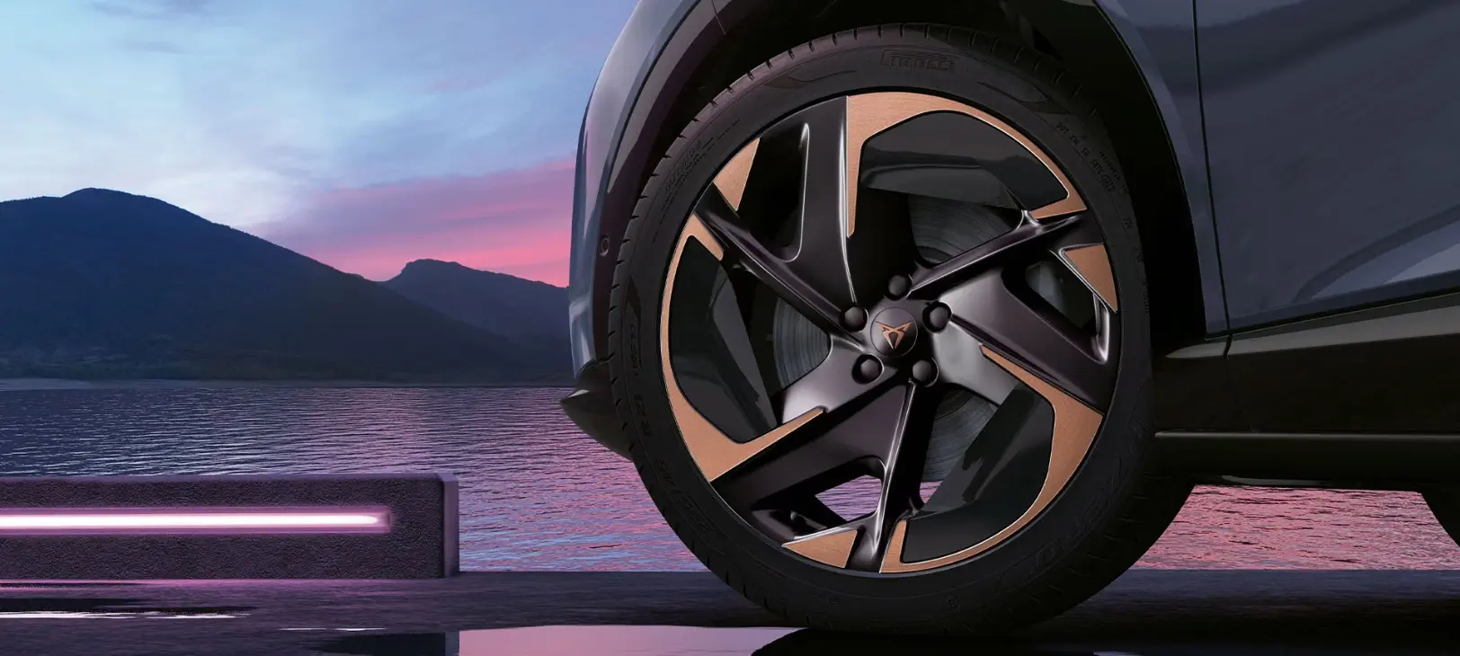 Podświetlane logo CUPRA Tavascan to manifest siły i innowacji, wyznaczający nowe ścieżki w projektowaniu i symbolizujący potęgę tego elektrycznego SUV-a.