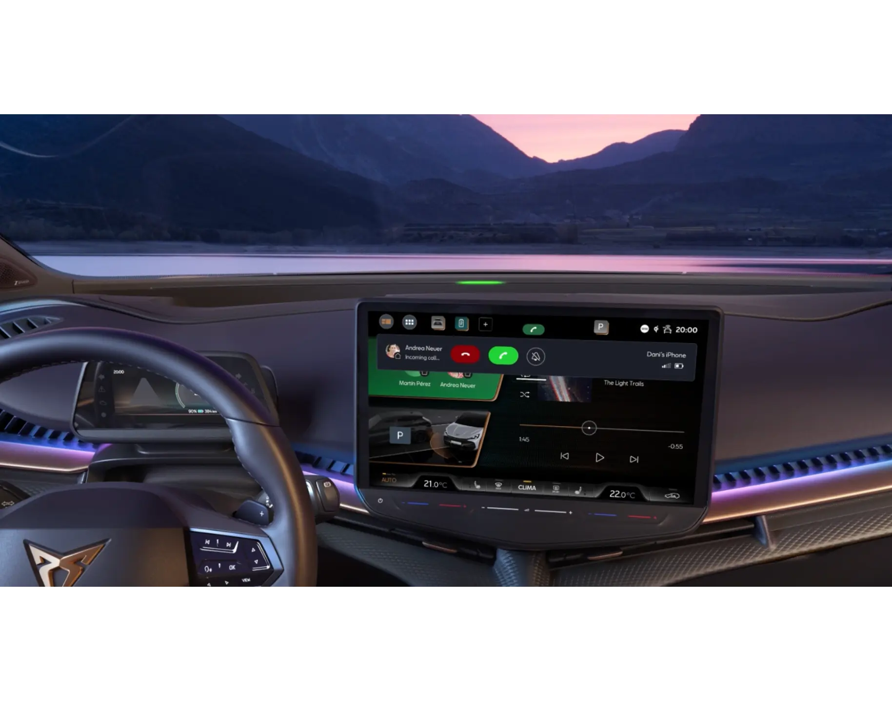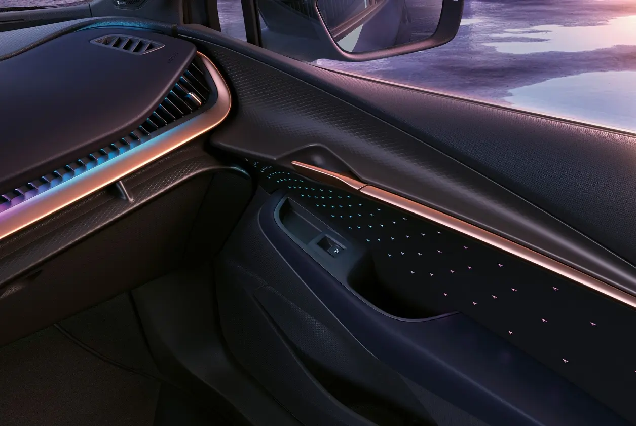 Zaawansowana technologia w służbie Twojego bezpieczeństwa. Inteligentne oświetlenie wnętrza to nie tylko estetyka, ale także aktywny system powiadomień. Wizualne alerty informują o kluczowych zdarzeniach – od połączeń z Twoim telefonem i poziomu naładowania akumulatora, aż po krytyczne ostrzeżenia.