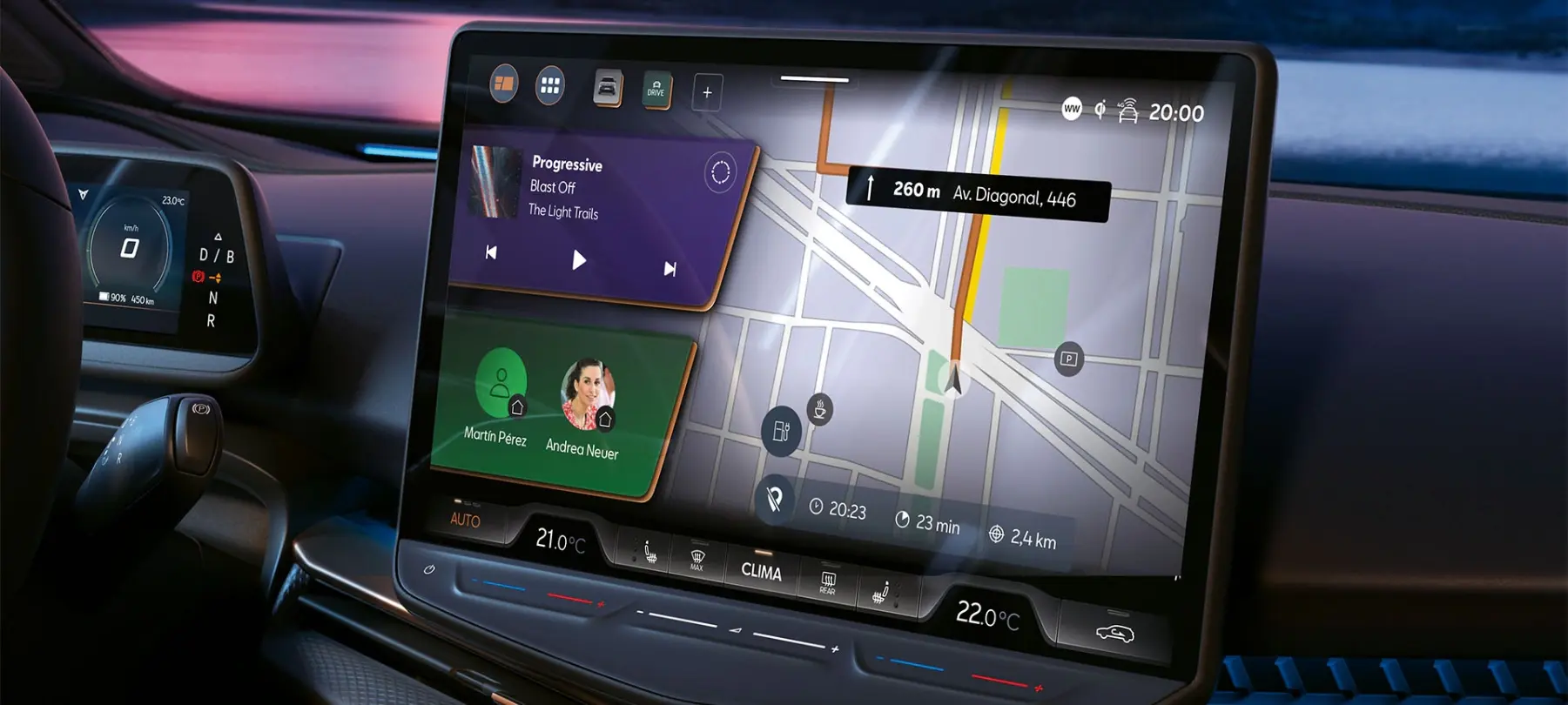 Podróżuj inteligentniej i bez opóźnień. Dzięki informacjom o ruchu drogowym online w czasie rzeczywistym, system dynamicznie optymalizuje Twoją trasę. Całość uzupełnia opcjonalny system audio klasy premium z wieloma głośnikami i subwooferem, zapewniający krystalicznie czysty dźwięk.